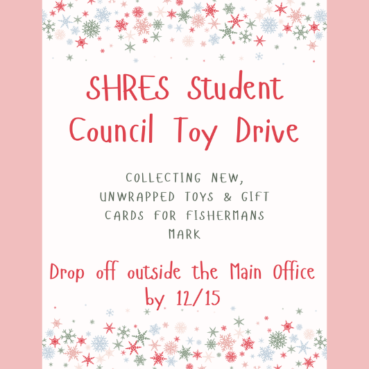 Fisherman's Mark Toy Drive: We are accepting NEW, unwrapped toys and gift cards for Fisherman's Mark. We will have a box in the main office area for toy donations.  Gift cards can go in the envelope in my mailbox, please do not have students put gift cards in the toy donation box!