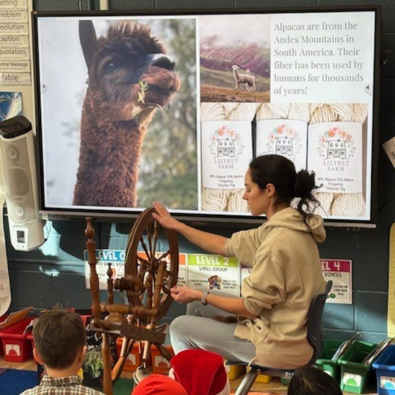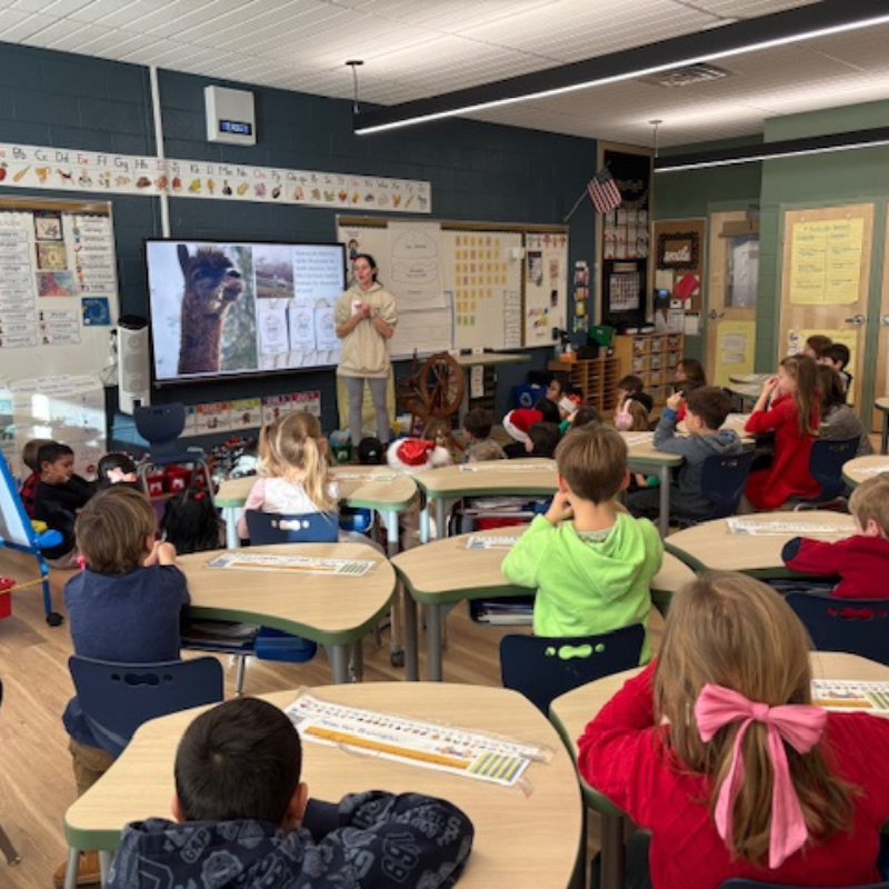 On December 22nd, the First Grade was treated to an engaging presentation from one of our parents, continuing our community involvement initiative. In conjunction with our Wit and Wisdom Module, "Creature Features", we learned about Alpacas and their incredible fur. Mrs. Briesch demonstrated how they care for Alpacas on their farm, harvest their fur, and turn it into yarn. The students had a wonderful experience learning about the process and even trying some of the steps as well.  Thank you Lilybet Farm!