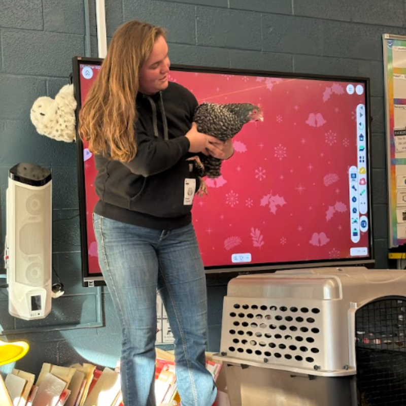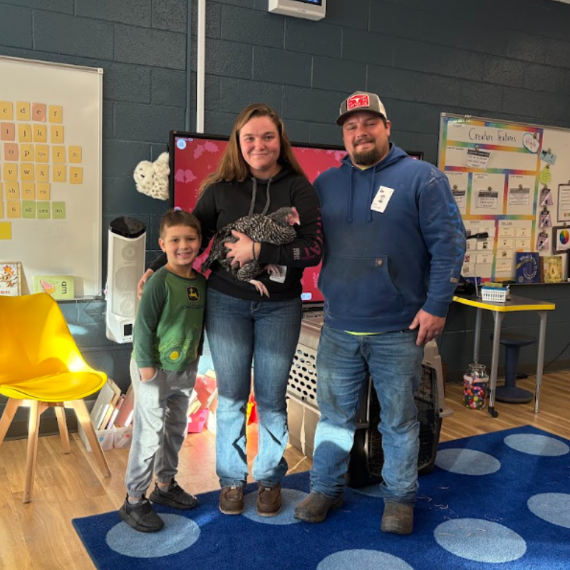 Also in December, our first grade students enjoyed a special parent involvement activity.  Mr. and Mrs. Glashoff visited our classroom to teach us all about chickens. They even brought in a real chicken, which made the experience extra exciting and engaging for the students!